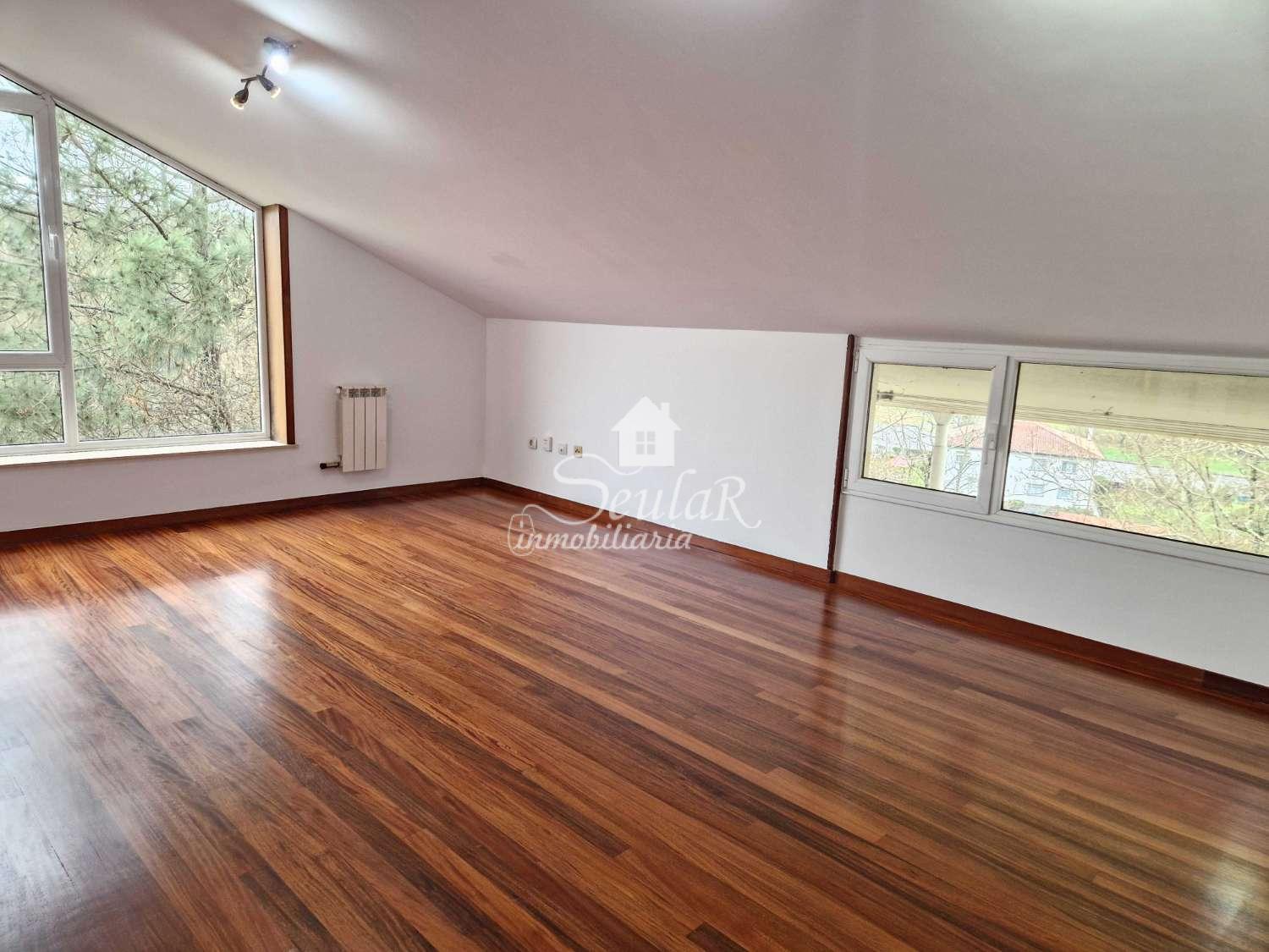 Se vende ático en la urbanización de Monte Balado, Os Ánxeles, Brión, a 2 minutos de Bertamiráns y a 10 de Santiago de Compostela. Tiene 2 dormitorios con armarios empotrados, salón amplio y luminoso, cocina independiente, un baño, plaza de garaje, trastero... y también dispone de electrodomésticos, tendedero, PISCINA comunitaria, parada del bus y supermercados al lado... Interesados e interesadas no duden en llamar.