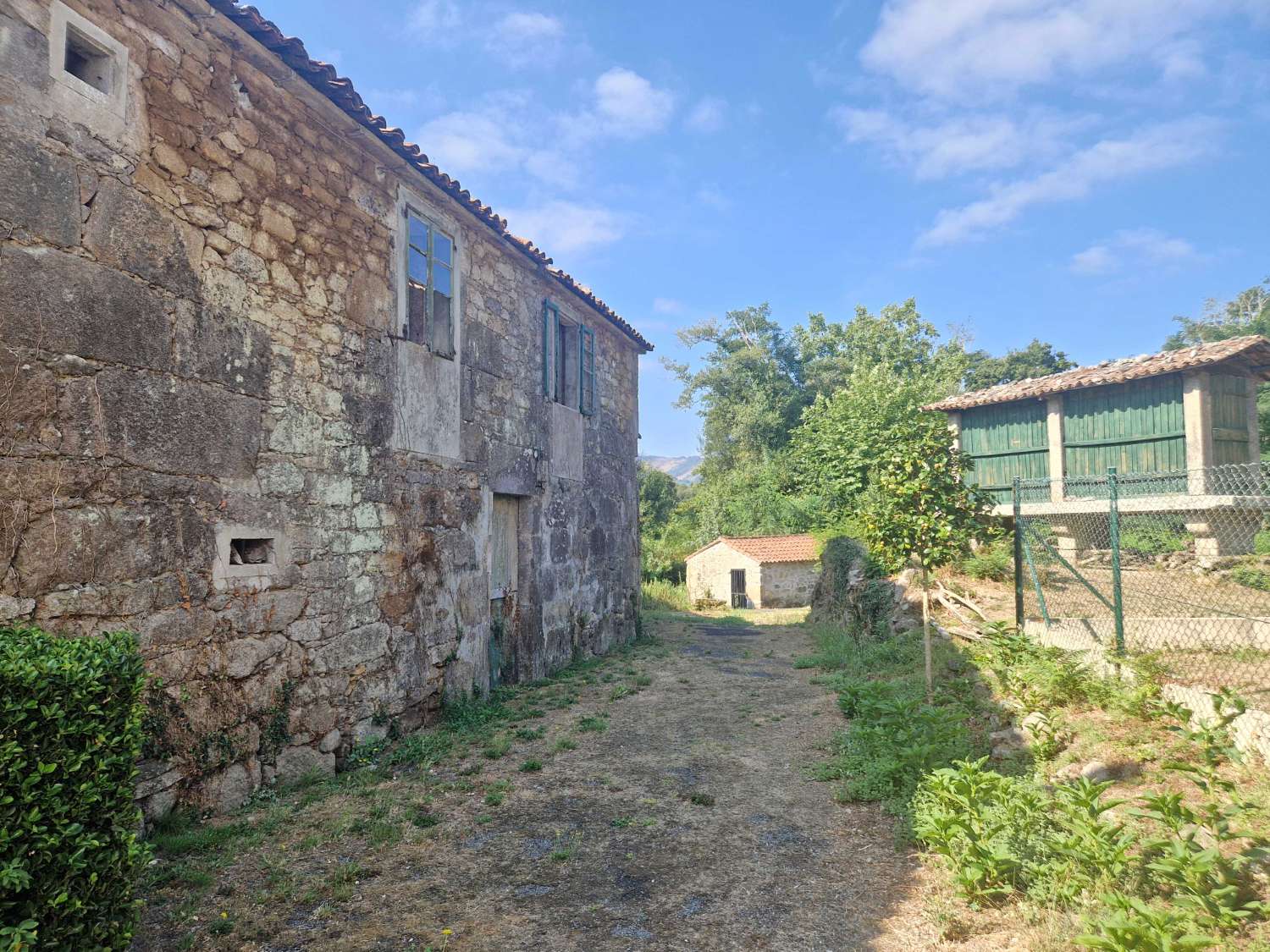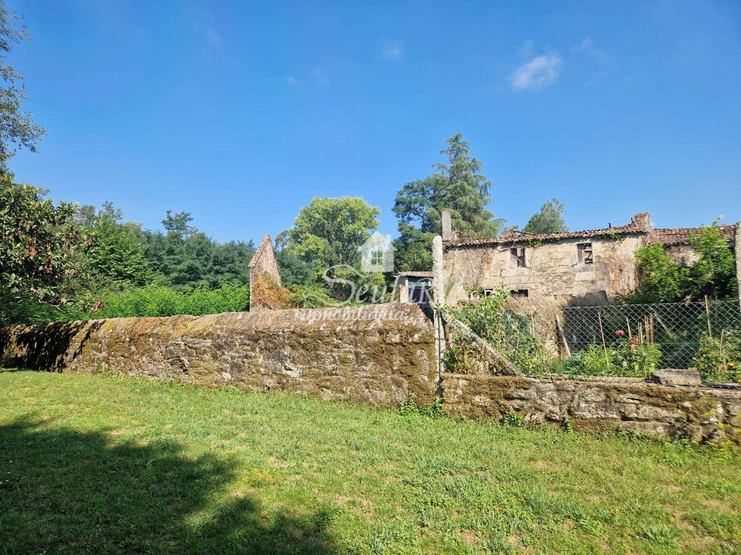 Se vende casa de piedra para rehabilitar en zona de Os Ánxeles, al lado de Bertamiráns y a 10 minutos de Santiago de Compostela. Dispone de una construcción total de 254 m2, de los cuales 150 serían de vivienda y 104 agrarios. Tiene un terreno unido de 381 m2 cerrados con muro, y otra finca, al cruzar el camino de 627 m2, donde también hay un hórreo. Para llegar a la casa, solo se accedería con un vehículo pequeño, ya que el acceso es estrecho, si es con un coche más grande, habría que dejarlo aparcado a unos 25 metros. Parada del bus cerca, posibilidad de ir andando. Interesados e interesadas no duden en llamar.
